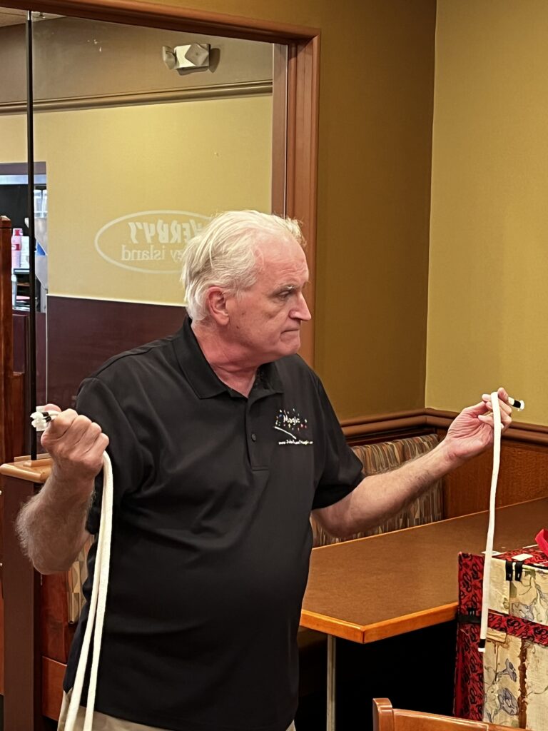 April may only have joined the club a few years ago, but she is an active participant as you can see from the photos below. April started out at ground zero in magic and is a great example of how being a member of the club can jump start your magic career.