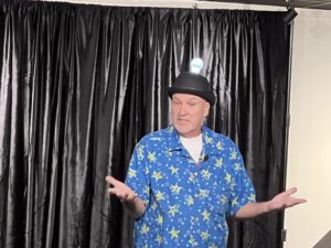 John had the least amount of props among us and worked out of a small suitcase with Clancy, his vent dummy, corny jokes, passe' passe' bottles, a die box, and all the tricks you would expect in a child's magic set. But what he had in abundance was a compelling personality, one-liners, jokes from the dawn of civilization, and an infectious smile; as an audience, you liked him right away.