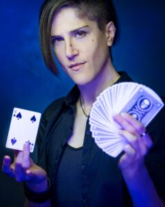 I have always been interested in magic and read a lot about it. It was always around during childhood; Penn/Teller's shows/books. I saw Copperfield as a kid. Magic became an active hobby late in the pandemic because I could no longer pursue my current hobby as an aerialist; (Flying trapeze, silks, and hoop,) and needed a new way to be in the lime-light!