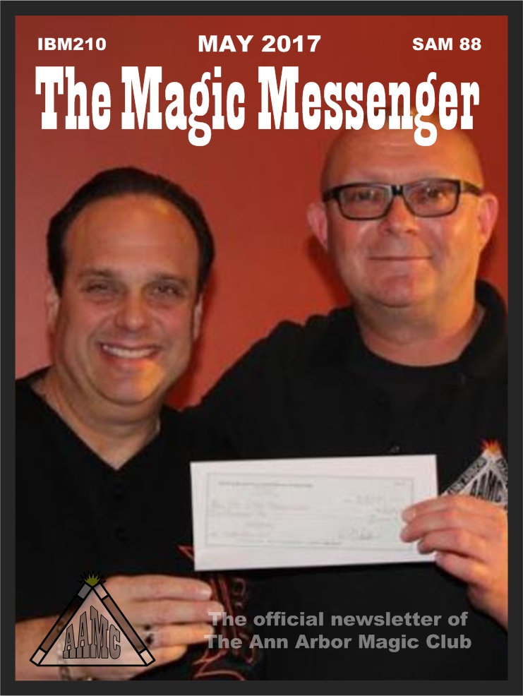 On this month's cover Don Oesterwind (Left) presents club Vice President Mark O’Brien with a check to the AAMC for putting on the Magic at the Magic of Giving Rotary fundraising show in March.